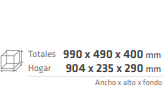Cuerpo de acero con interior de vermiculita de 3 cm de espesor y parrilla de hierro fundido con cajón cenicero.