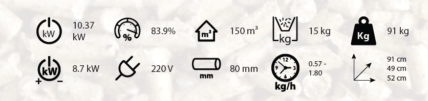 - Excelente rendimiento energético, con consumo optimizado de pellets