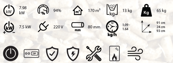- Potencia térmica: 8kW.