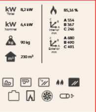 - Entrada de aire primario, opcional entre parte trasera o por debajo, Ø 120 mm.