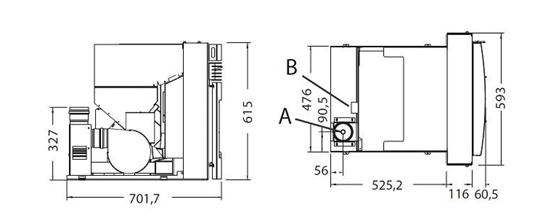 • Dimensiones: ancho: 59,3 cm – profundidad: 70,2 cm – altura: 61,5 cm